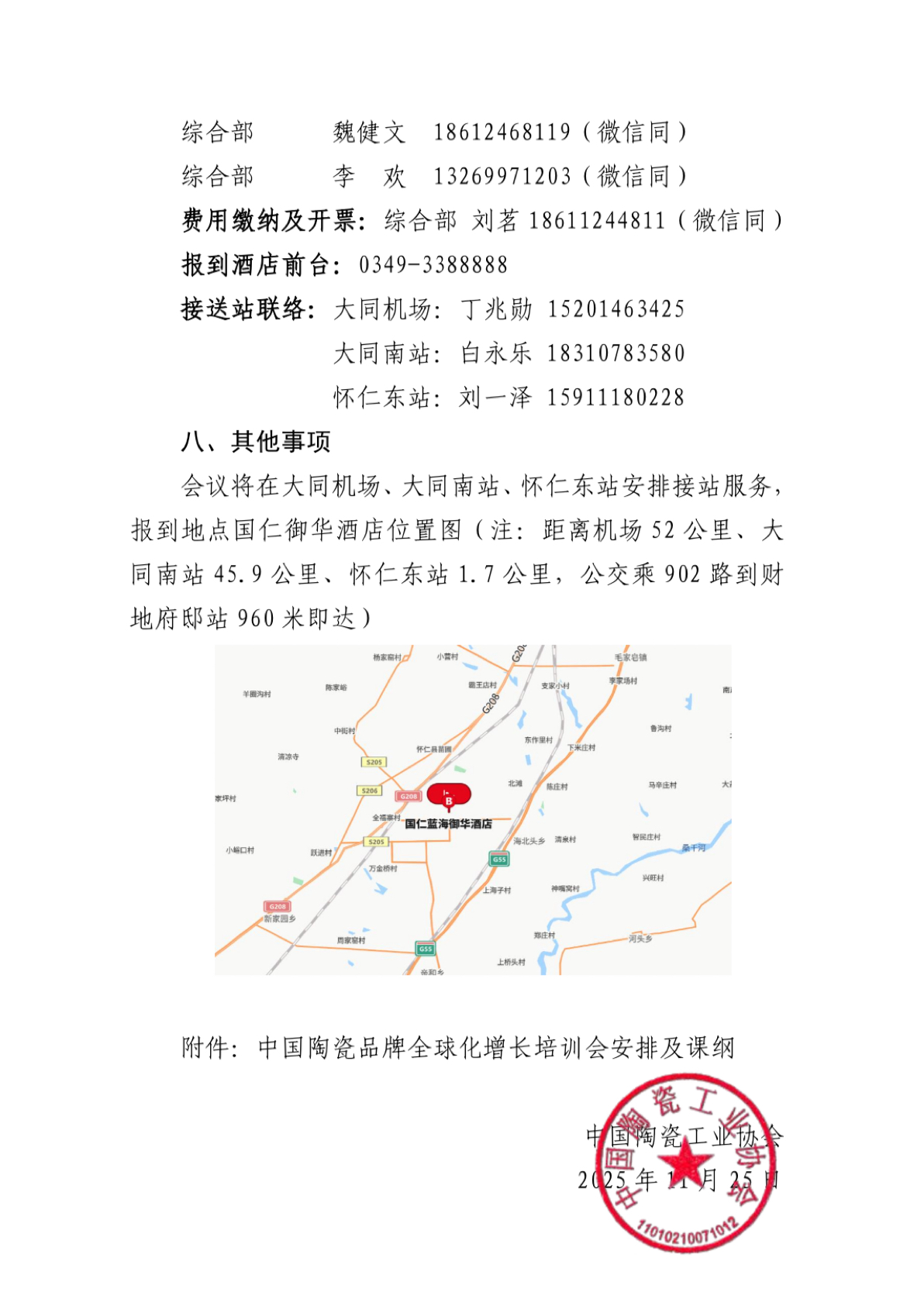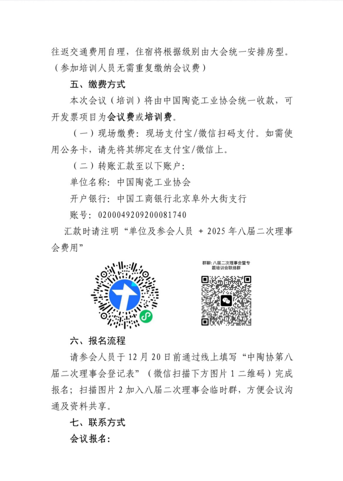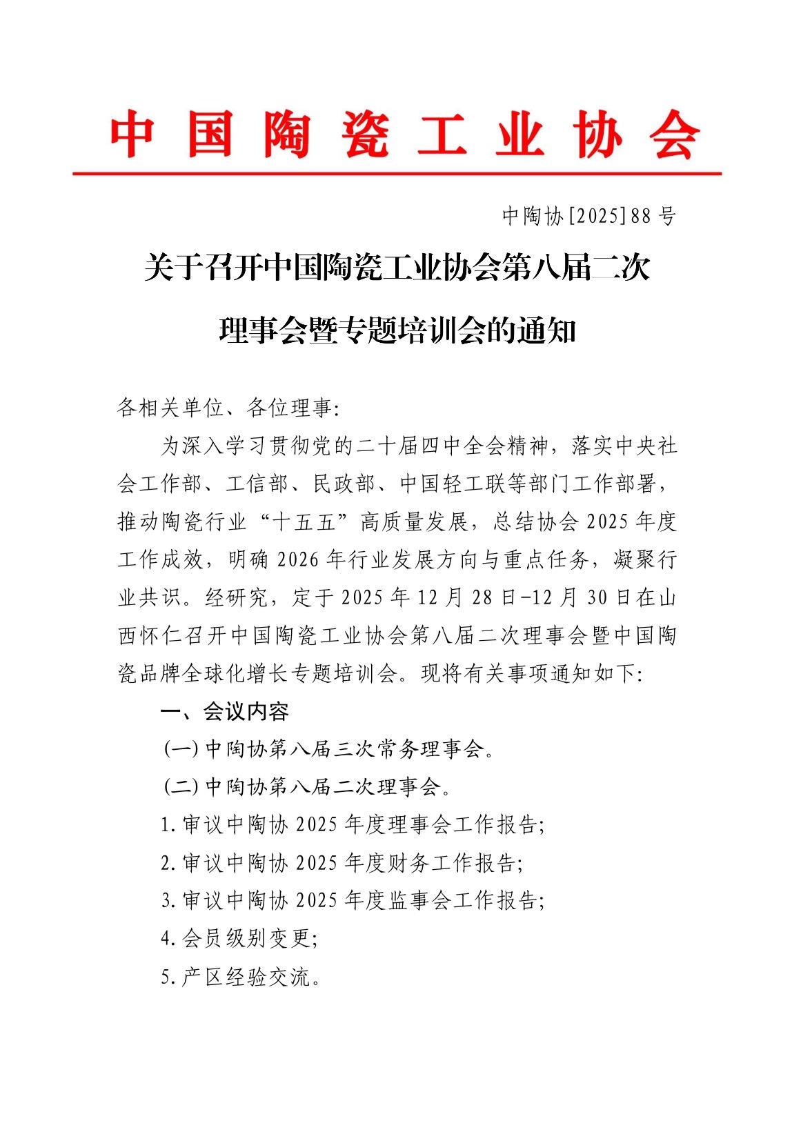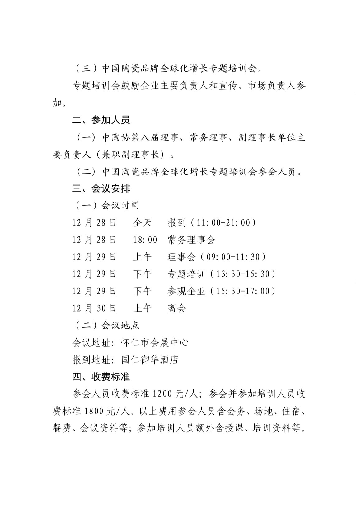 关于召开中国陶瓷工业协会第八届二次理事会暨专题培训会的通知