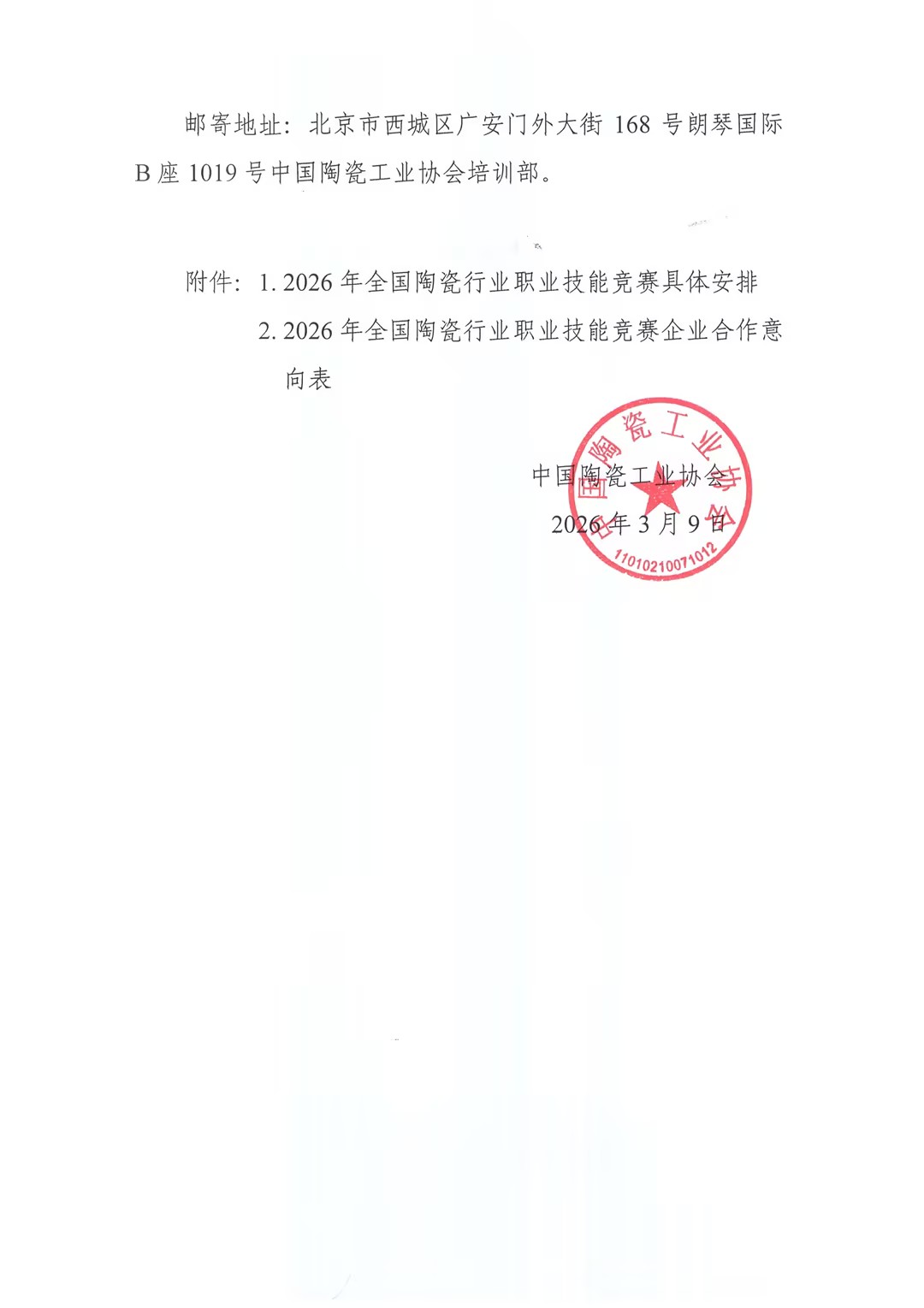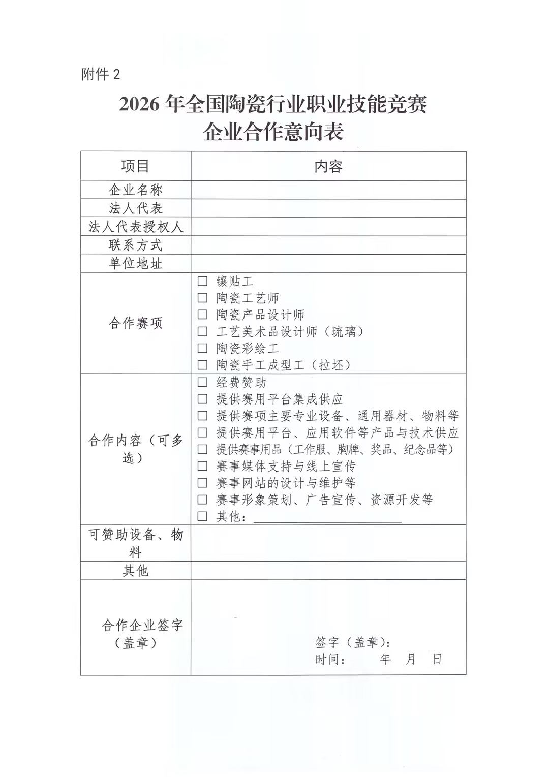 关于征集2026年全国陶瓷行业职业技能竞赛合作企业的通知