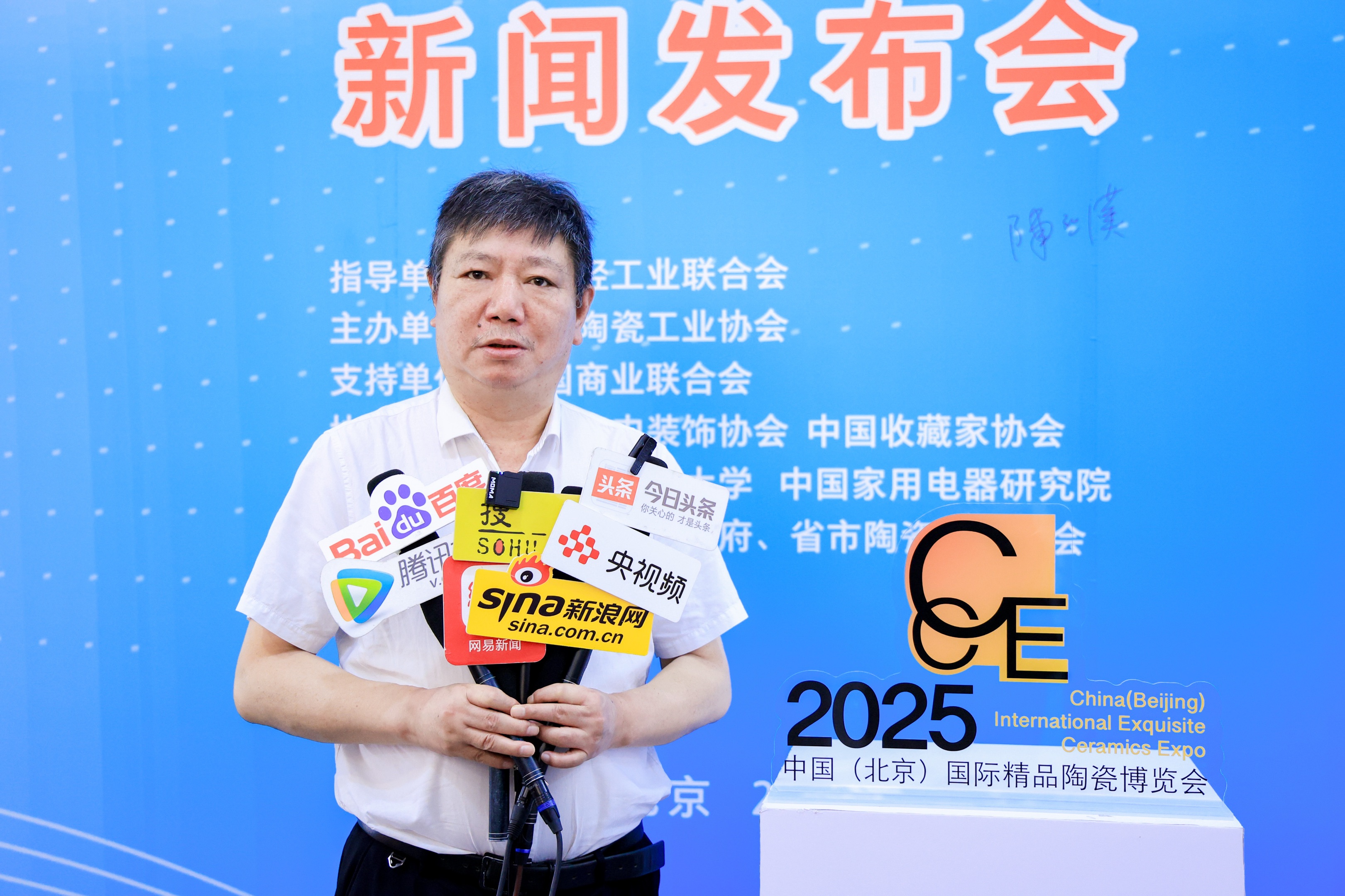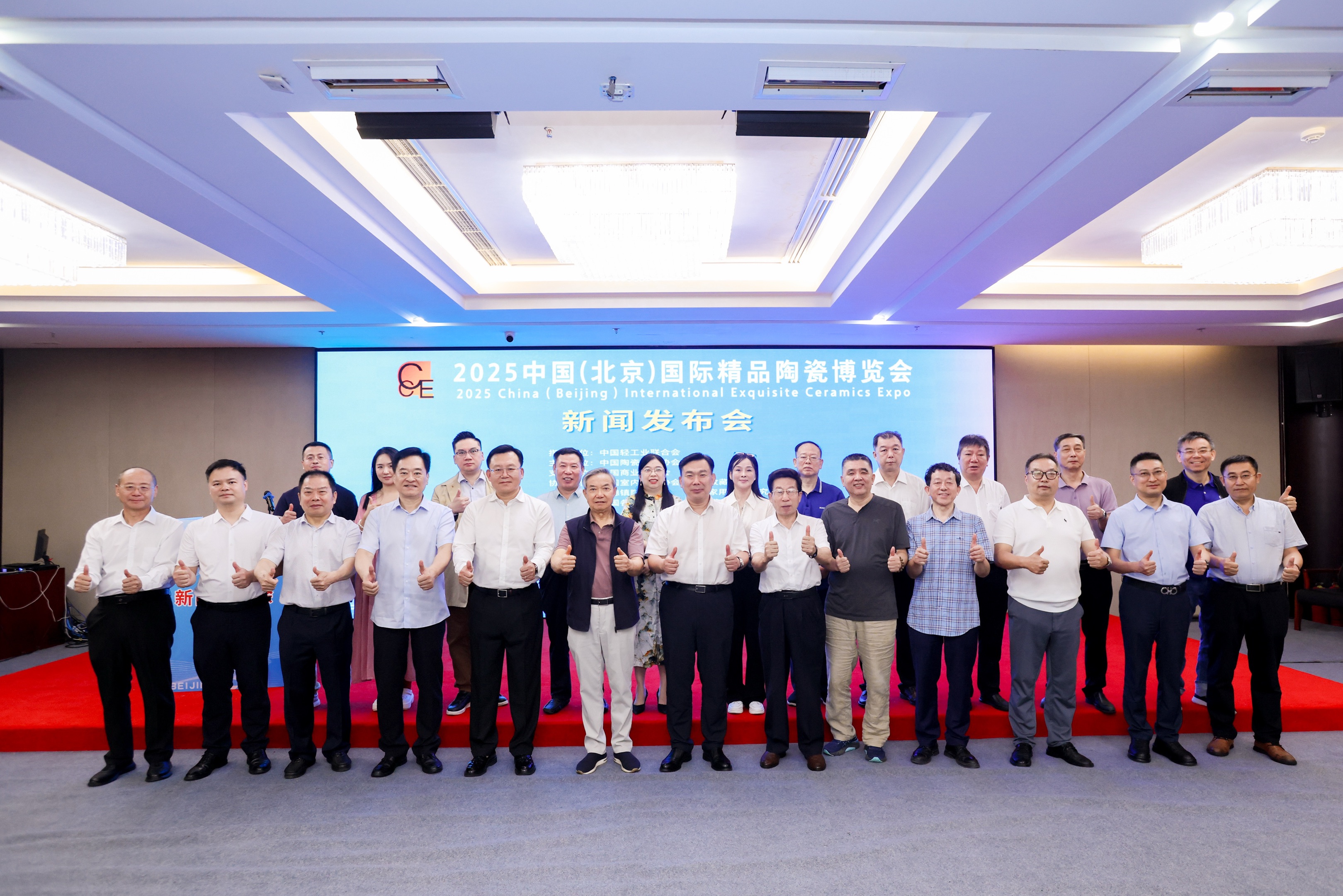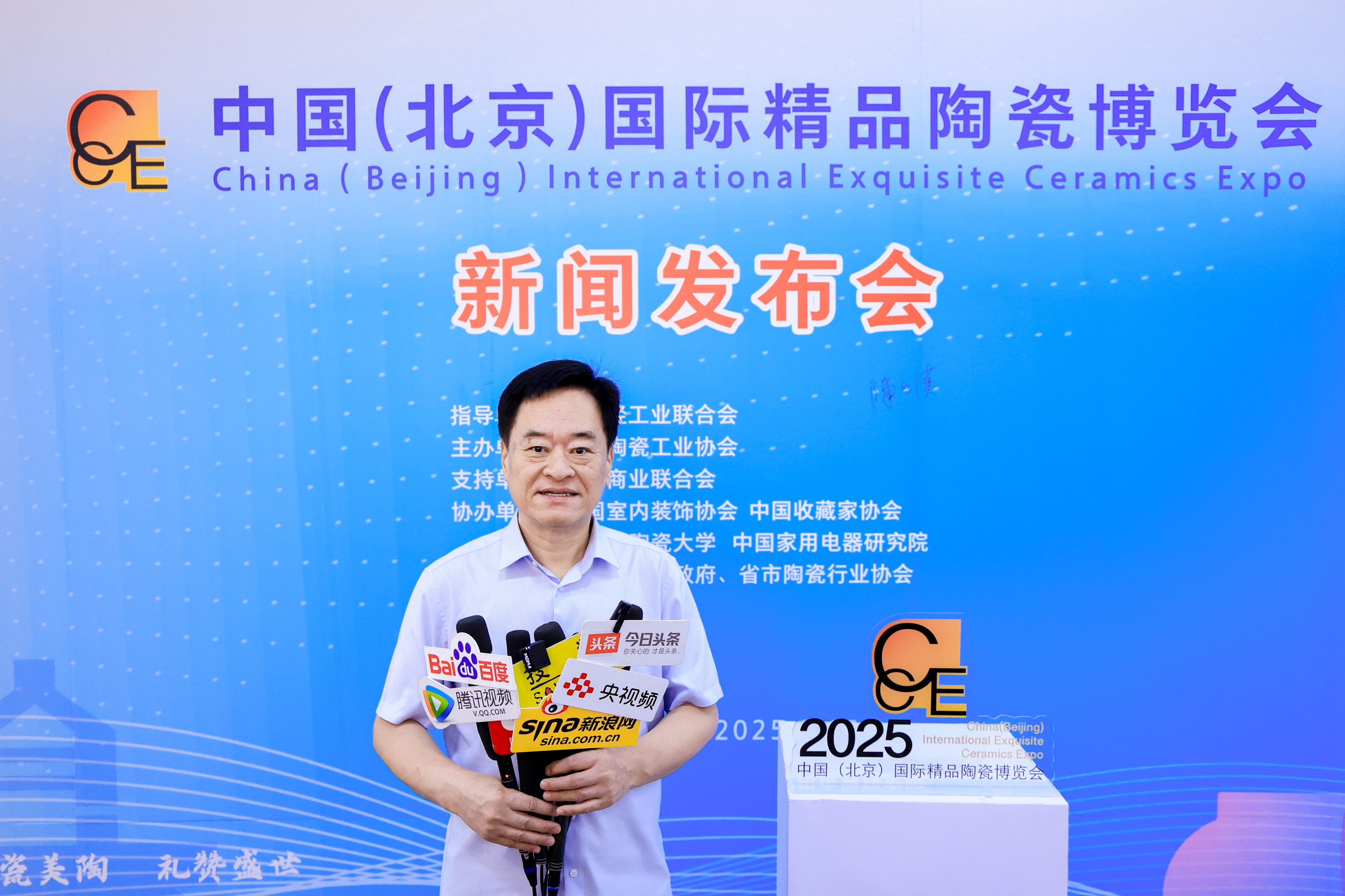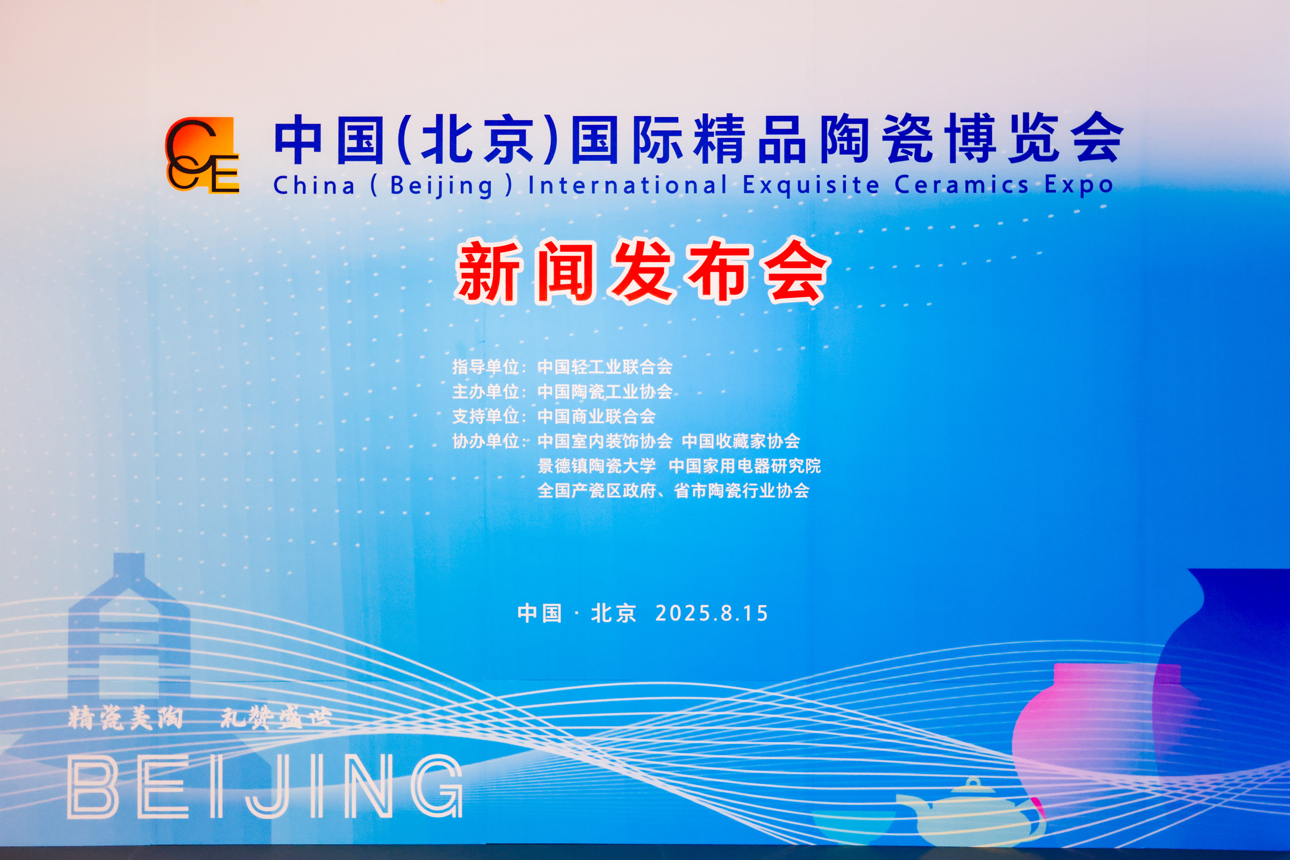 2025年8月15日,由中国轻工业联合会指导,中国陶瓷工业协会主办,中国商业联合会支持,中国室内装饰协会、中国收藏家协会、景德镇陶瓷大学、中国家用电器研究院、全国产瓷区政府、省市陶瓷行业协会协办的2025中国(北京)国际精品陶瓷博览会的新闻发布会于8月15日在北京陶瓷艺术馆举行。中国陶瓷工业协会刘挺理事长,中国书画收藏家协会张德俊会长,中国商业联合会副秘书长、会展部部长、采购商分会会长李宝,中国室内装饰协会王东明秘书长,江苏省陶瓷行业协会史俊棠会长,闽龙集团陈进林董事长等领导及嘉宾出席了新闻发布会。